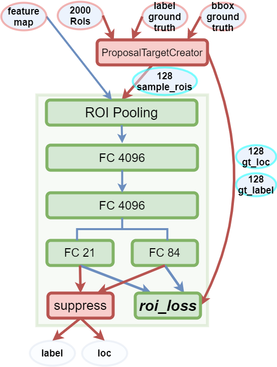 - RoI classification loss: RoI belongs to which category (21 categories, one more category as background).